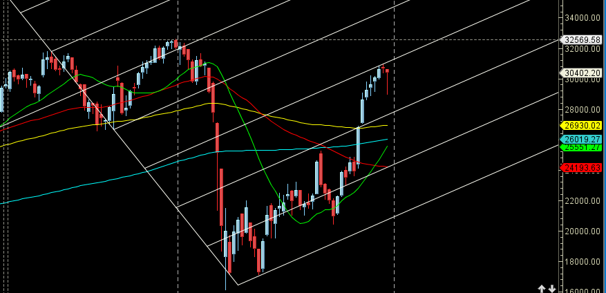 Monthly candle need to go above 30900 for a move back to 31317/31822. Bears below 30391 has upper hand till 30069/29792/29555.