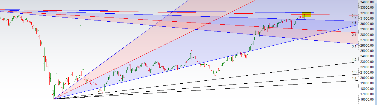 • As discussed in Last Analysis  Bulls were able to do 1 target on upside and we got the trending move as per expectation. Now we are again at Gann Angle resistance bulls need to move above 31777 for a move back to 32014/32300. Bears will active below 31470 for a move back to 31200/31010/30800. Another gap up open but unable to sustain above 31777,Gann Angle resistance  and bear unable to break 31470. As we have weekly expiry tommrow, Bulls were able to close above 31777 waiting for the target of 32014/32300/32423. Bears will active below 31696 for a move back to 31585/31343/31135.