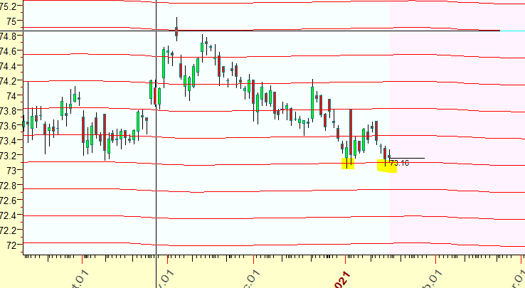 Rupee taking support at Venus Planneatry line. Price Heading higher towards 73.52/73.77.