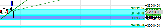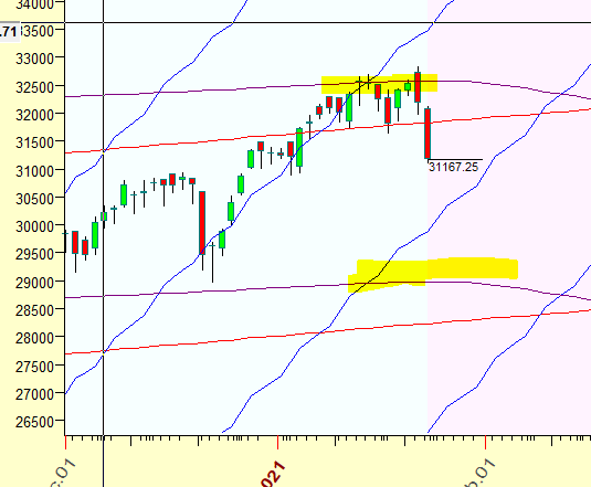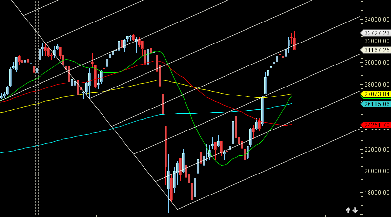 Price heading to touch gann angle support at 30243.