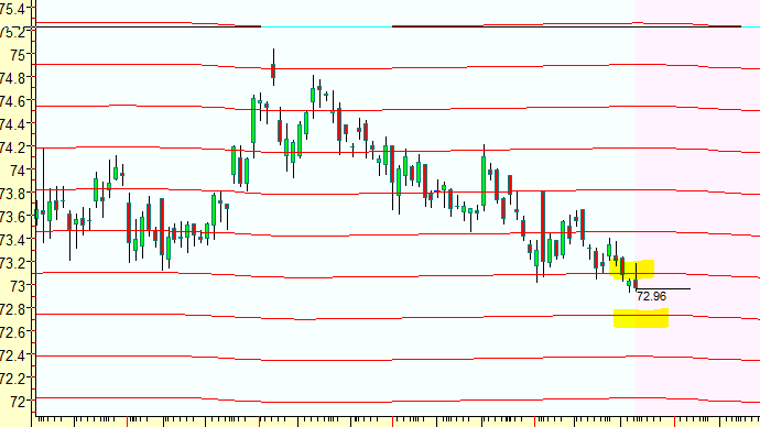 Rupee broke the support at Venus Planneatry line. Price Heading higher towards 73.20/73.