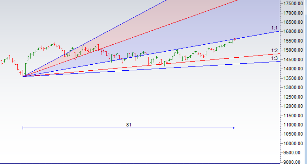 • As Discussed in Last Analysis  Bulls need to hold this level of 15541 and close above 15610 for the move to contiue towards 15668/15743/15843. Bears will get active below 15521 for a move back to 15485/15424/15385. High made today was 15660 almost near our 1 target of 15668, Now we are nearing an important gann price time  squaring as tommrow is 81 trading days from low made of 29 Jan, Venus Ingress  and we are near gann angle resistance as shown in below chart. Now Bears need to break 15517 for a move back to 15455/15382/15323. Bulls till above 15541 are safe but failure to close above 15610 will show trend is getting weaker.Bulls need to hold this level of 15541 and close above 15610 for the move to contiue towards 15668/15743/15843