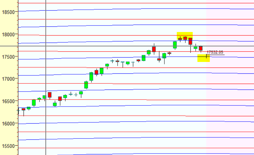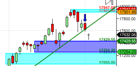 Price coming back to test the weekly support 17424 crucial for coming week.