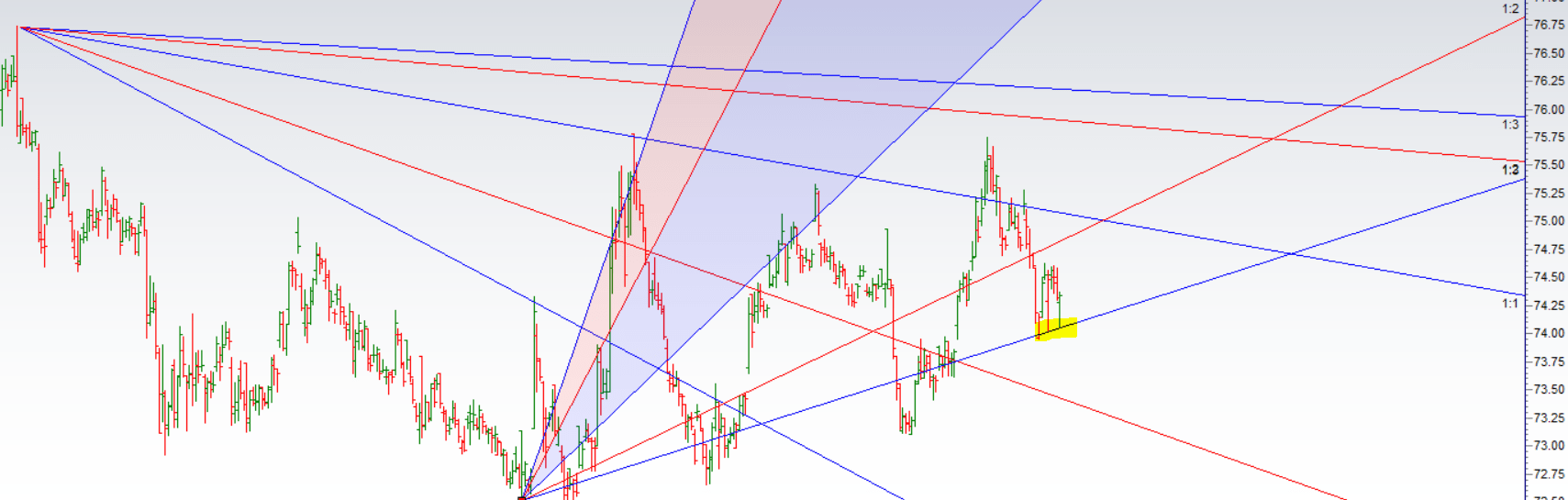 Price back to gann angle support zone.