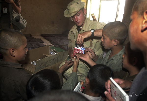 The soldiers then mustered their spirits and stepped forward and did what they came to do. They greeted and spent time talking with the children and searched their pockets for anything that they could possibly offer and share with these youngsters, a stick of gum, candy, special coins, ribbons, whistles … just anything. Their hearts and souls were filled with the spirit of giving as they could see that by their very presence and their sincere and genuine attention to these innocent children which society had forgotten that they were making a difference no matter how small. The young men all felt the warmth inside of giving and sharing.
