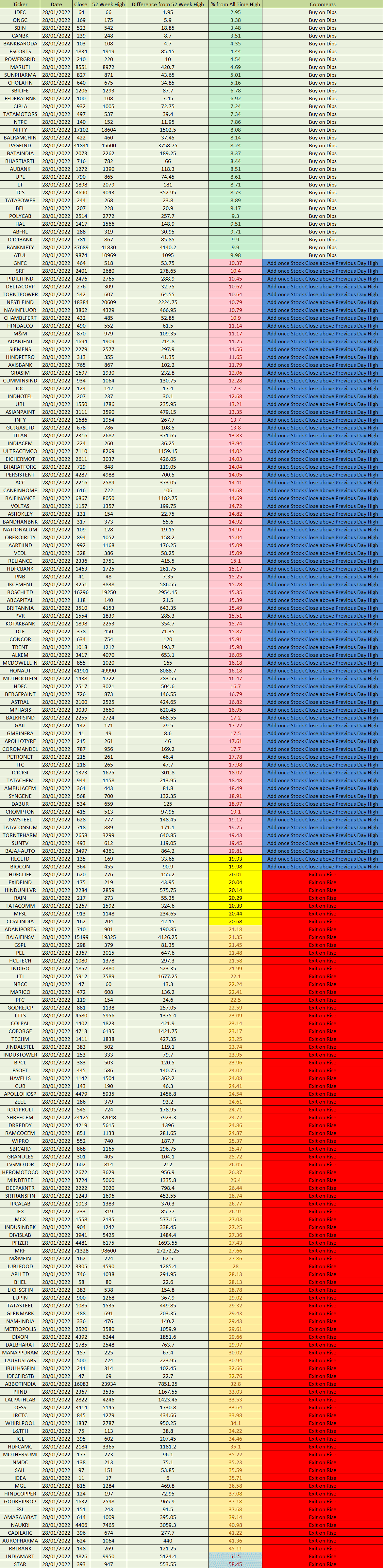 Below are the List of Stocks which are part of F&O STOCKS which are trading near its 52 Week High.