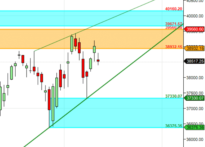 Price unable to breach Plannetary resistance at 39000 now heading lower towards 37452/37083
