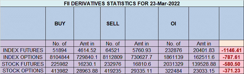 FII sold 12.6 K contract of Index Future worth 1146 cores, Net OI has increased by 5 K contract 3.7 K Long contract were covered by FII and 8.8 K Shorts were added by FII. Net FII Long Short ratio at 1.23 so FII used fall to exit long and enter short in Index Futures.