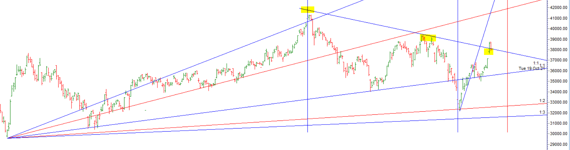 Today was Mars and Saturn Aspect ,High of 38759 and 37935 is valid for whole year Mark in on your charts and take trade on break of High and Low.