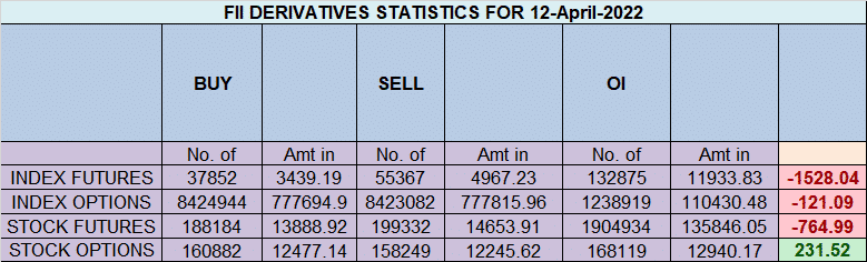 FII’s sold 3128 cores and DII’s bought 870 cores in cash segment.INR closed at 76.23.