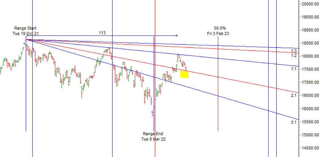 As discussed in last analysis For Swing Traders Bulls need to move above 17733 for a move towards 17799/17865/17932. Bears will have chance below 17642 for a move towards 17575/17505/17442. Bears were able to do all target on downside and saw a decent bounce from our final target of 17442, Low made for the day was 17442. Tommrow we will have Bayer Rule 27: Big tops and big major bottoms are when Mercury’s speed in Geocentric longitude is 59 minutes or 1 degree 58 minutes. so first 15 mins high and low will decided the trend of the day. We are back to gann angle support zone as shown below, For Swing Traders Bulls need to move above 17640 for a move towards 17706/17772/17838. Bears will have chance below 17508 for a move towards 17442/17385/17323. Also tommrow is last trading day as next 2 days are trading holidays.
