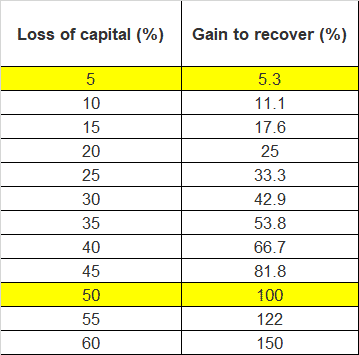 Manage risk There’s only one way to recover from a drawdown safely. You must carefully manage risk . You must stay calm, determined, and rational. You must work at a steady pace until you make enough profits to break even. Always Keep the below stats in mind.