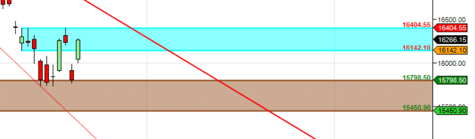 Bulls need move above 16400 for a move towards 16666/16800. Bears below 16108 for a move towards 16000/15800.