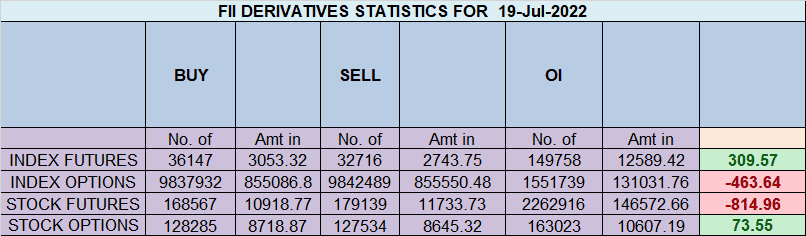 FII bought 3.4 K contract of Index Future worth 309 cores, Net OI has decreased by 5.5 K contract 4.4 K Long contract were added by FII and 1 K Shorts were added by FII. Net FII Long Short ratio at 0.25 so FII used rise to enter long and enter short in Index Futures.