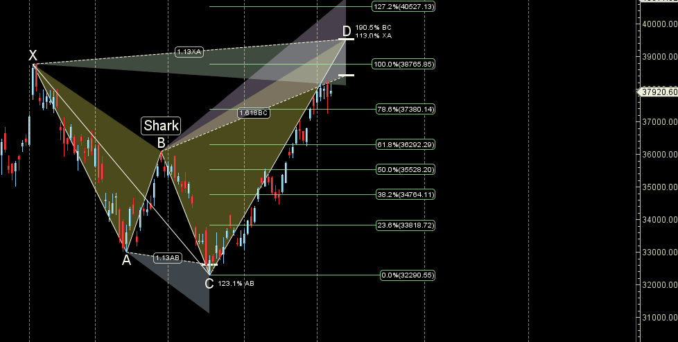 Shark pattern approaching PRZ Zone around 38500.