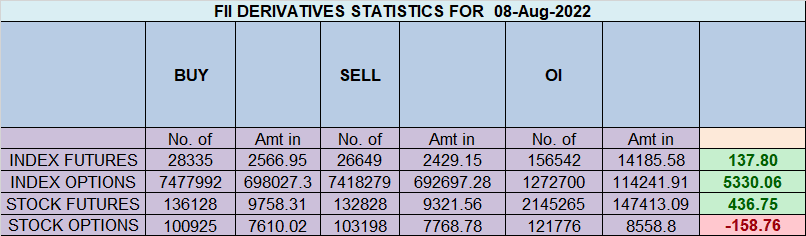 FII bought 1.6 K contract of Index Future worth 137 cores, Net OI has increased by 10.8 K contract 6.2 K Long contract were added by FII and 4.5 K Shorts were added by FII. Net FII Long Short ratio at 1.23 so FII used rise to enter long and enter short in Index Futures.