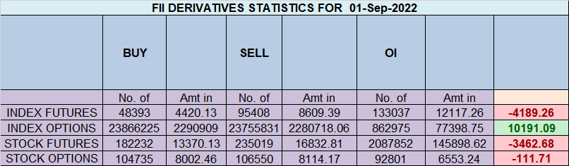 FII sold 47 K contract of Index Future worth 4189 cores, Net OI has increased by 33.8 K contract 6.6 K Long contract were covered by FII and 40.4 K Shorts were added by FII. Net FII Long Short ratio at 0.37 so FII used fall to exit long and enter short in Index Futures.