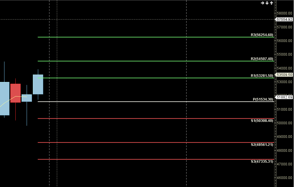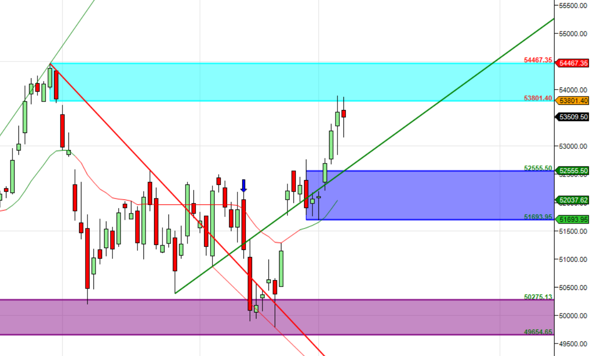 54500 is Monthly Resistance zone 53281 is Monthly Support zone.