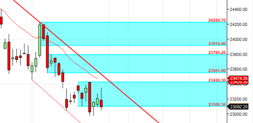 23500 is Monthly resistance zone 23117 is Monthly Support zone.