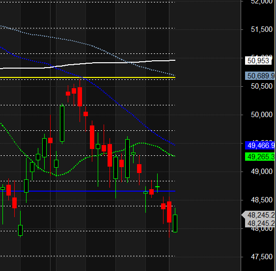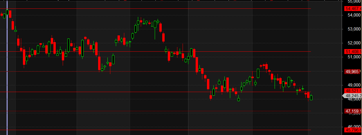 Bearish Breakdown Below: 48,500 → Could trigger another wave of selling towards 48,000 / 47,844.