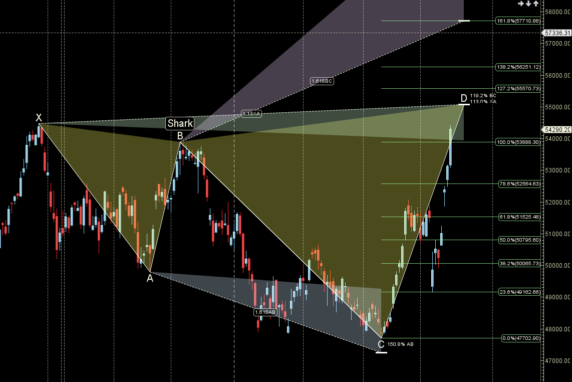 Shark Pattern Completed shark pattern in range of 55195-55555. time to book profits.