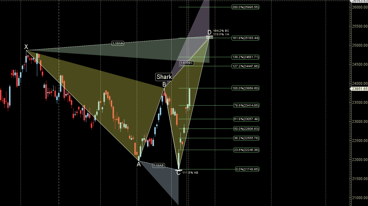 Shark Pattern has done its target above 24000 can lead to rally towards 24108/24225,