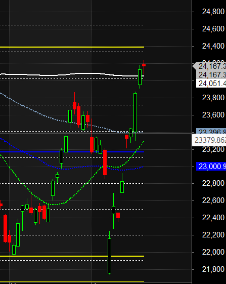 Nifty has closed Above its 200 SMA @ 24051 Trend is Buy on Dips till above 24000