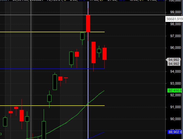 Break of 94000 on daily closing basis can lead to fall towards 91125.