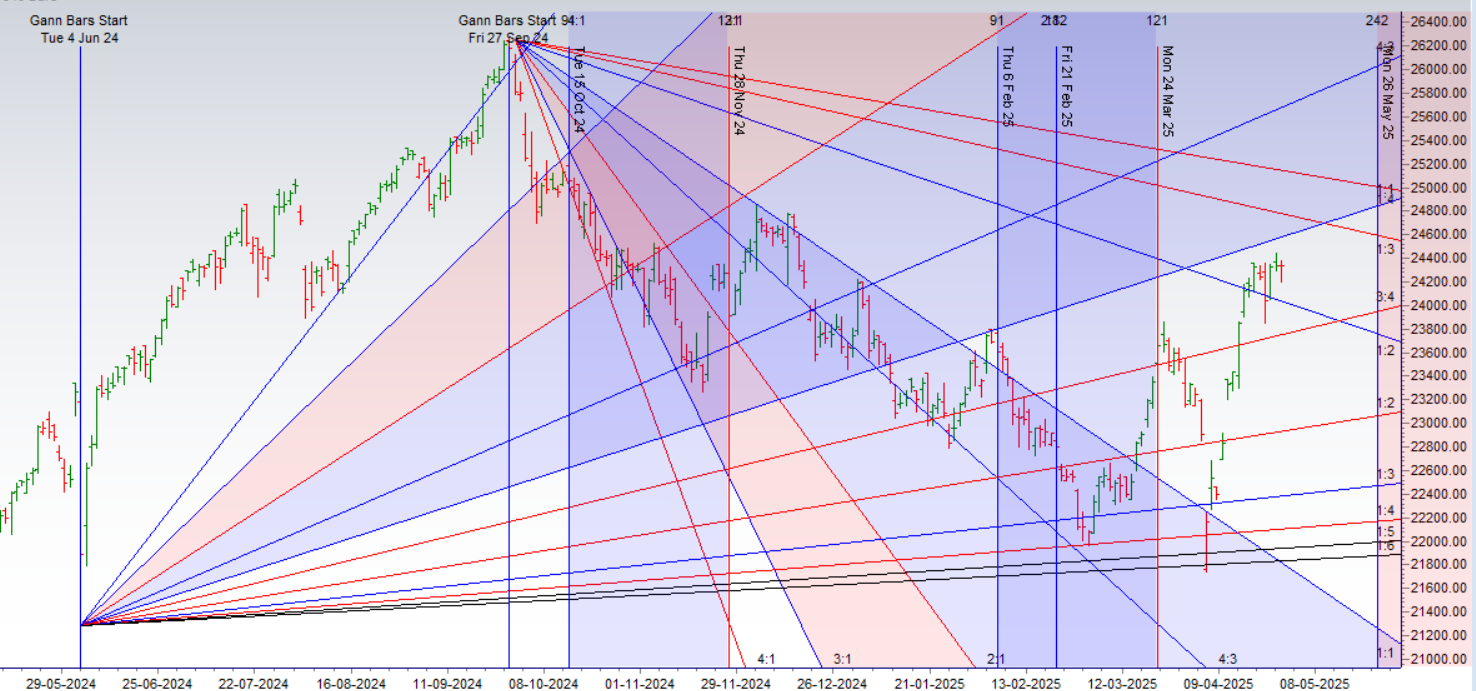 Gann Level Resistance: 24,389 remains a major hurdle.