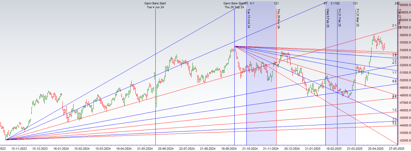 Bank Nifty Gann Monthly Trade level :52348 closed above it.