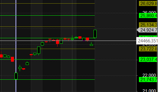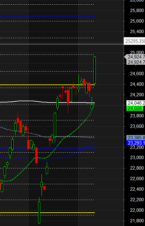 A sustained hold above this zone could set the stage for a continuation toward 24,900–25,050.