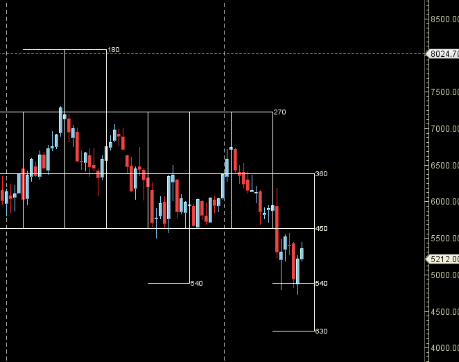 Crude is back above its 1×1 gann angle support once above 5300 heading towards 5555/5729.