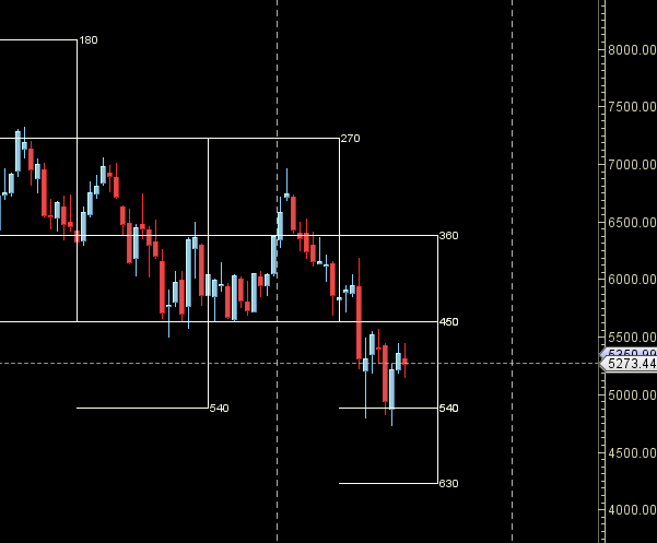 Crude is back above its 1×1 gann angle support once above 5300 heading towards 5555/5729.