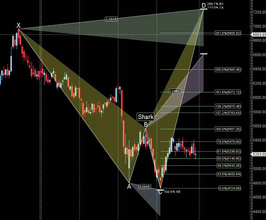 Price has bounced from Shark Pattern PRZ zone heading towards 5555 till holding 5140.