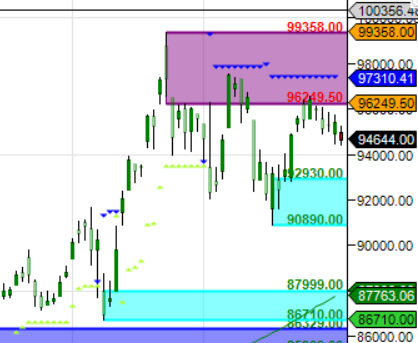 MCX GOLD Supply Demand Chart : Demand in range of 94000-93900 , Supply in range of 96250-96300