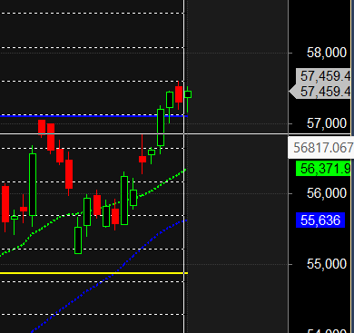 Sell Below 57420 Tgt 57342, 57225 and 57000 (BANK Nifty Spot Levels)