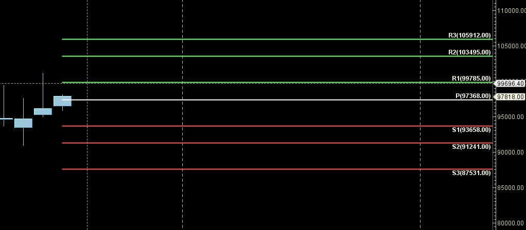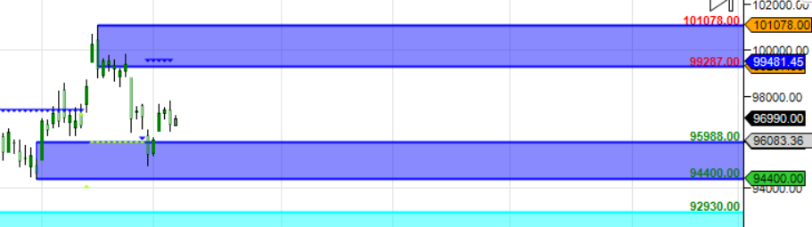 MCX GOLD Supply Demand Chart : Demand in range of 96000-95900 , Supply in range of 99000-99287