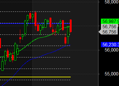 Bank Nifty closed Below its 20 SMA @56987 ,Trend is Sell on Rise till above 57000