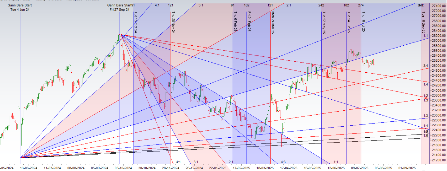 A weekly close decisively below 25,000 would be a catastrophic failure for the bulls. It would confirm the breakdown of the 50 SMA, lock in the bearish sentiment, and open the door for a much bigger fall in the upcoming monthly expiry week.