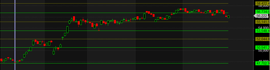 The Bearish Scenario: If the bulls fail to conquer 56388, or if the price is rejected from this level, the bears will seize control. A failure here would be a significant sign of weakness, suggesting that the path of least resistance is downwards. This would embolden bears to push for an expiry at the lowest point of the series, potentially targeting the range low of 55555 as their ultimate prize.