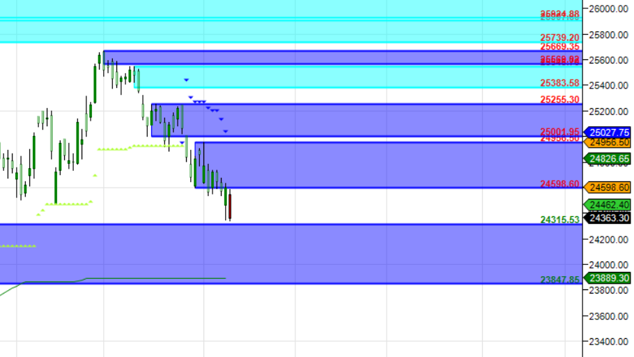 24991 is Monthly resistance zone 24375 is Monthly Support zone.