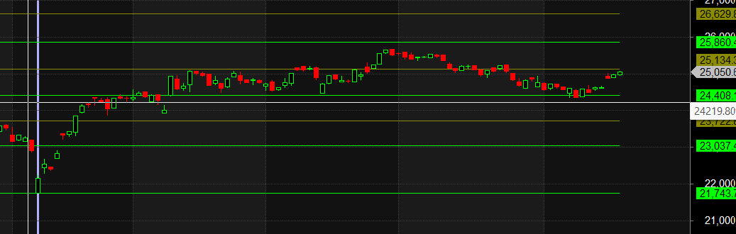Nifty has closed below its 20 SMA @ 25012 Trend is Buy on dips till above 24750