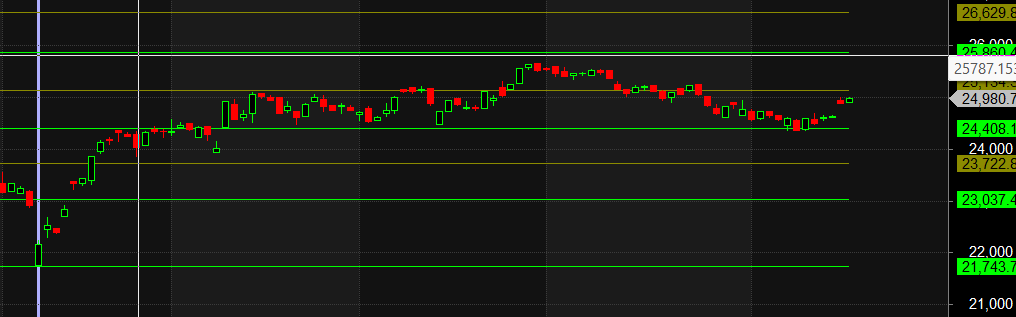 Nifty has closed below its 20 SMA @ 25012 Trend is Buy on dips till above 24750