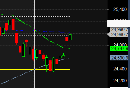 The primary obstacle for the bulls is the well-defined resistance at 25012-25025.