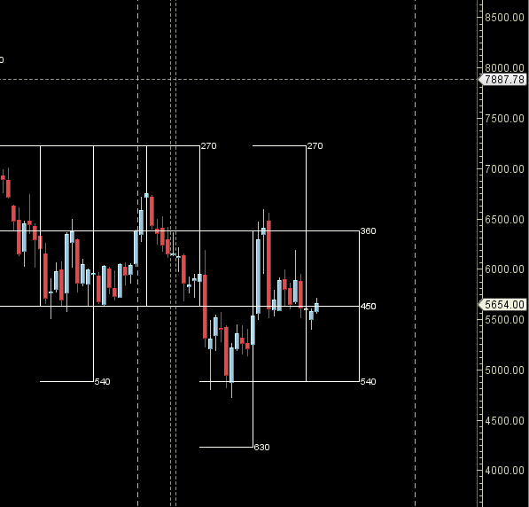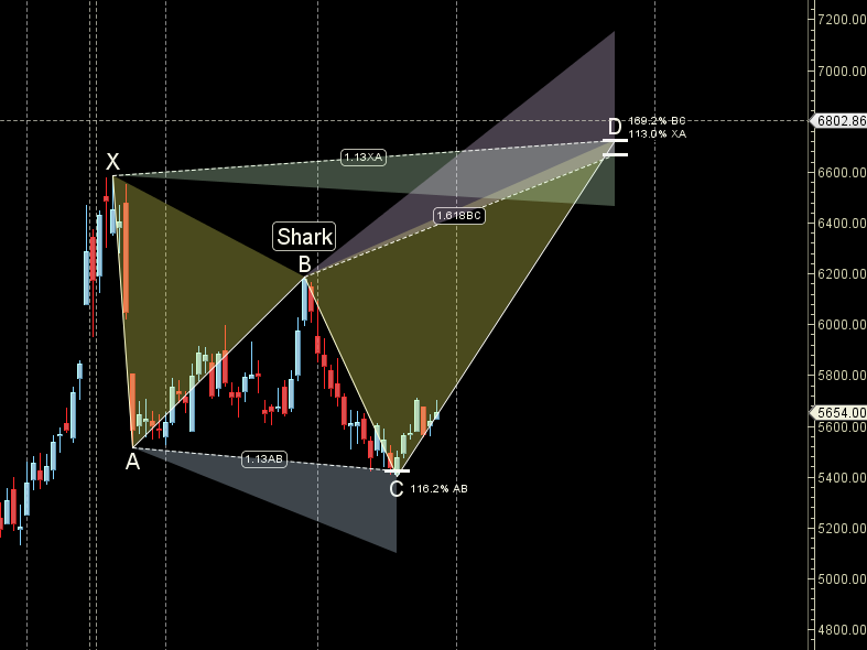 Price is forming Shark pattern Bulls should hold 5555-5600 range for a move back to 5850-5920 range.