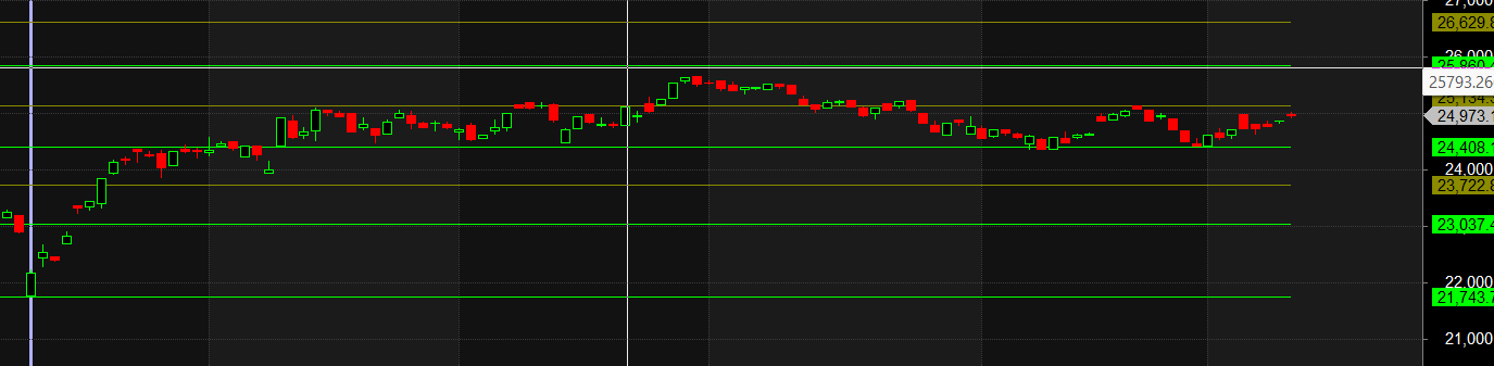 However, the repeated failure to secure a close above 25000 and the formation of Doji candles are significant warning signs. It suggests that supply is overwhelming demand at these higher levels, and the bullish momentum is waning.