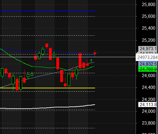 Nifty has closed above its 50 SMA @ 24921 Trend is Sell on Rise till below 25000