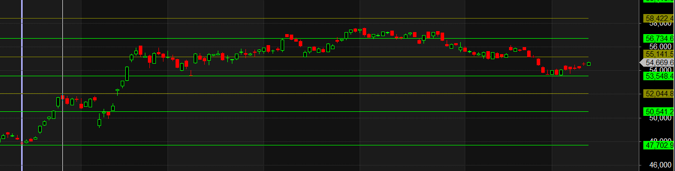 BANK Nifty Gann Monthly Trend Change level 54666 closed above it.