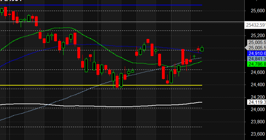 Nifty has closed above its 50 SMA @ 24964 Trend is Buy on Dips till above 24964
