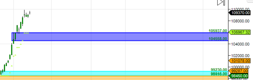 MCX GOLD Supply Demand Chart : Demand in range of 105937-106000 , Supply in range of 109656-109700